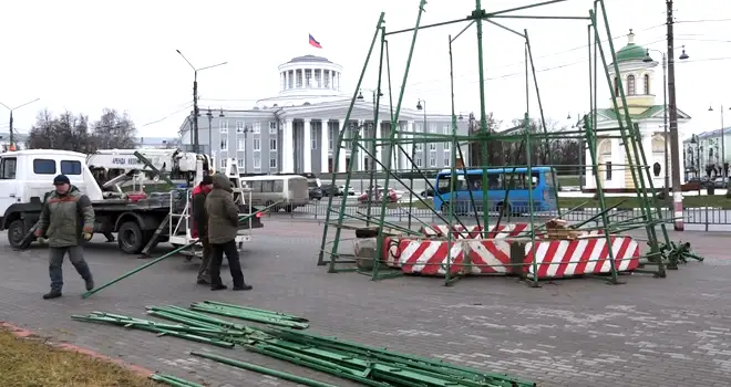 На новом месте: главную городскую елку начали устанавливать в Дзержинске