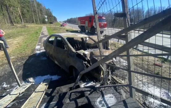 Вместе с переходом: автомобиль сгорел на трассе под Дзержинском